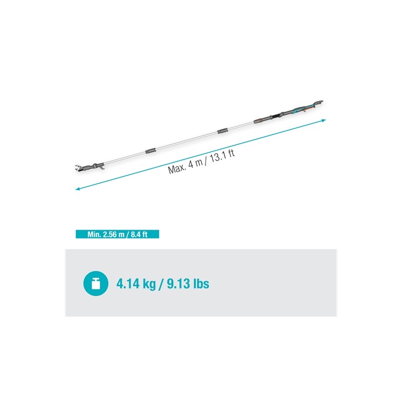 Długość teleskopowego trzonka wynosząca 3,6 metra oraz smukła, obrotowa głowica tnąca umożliwiają cięcie gałęzi pod różnymi kątami, nawet pod kątem 60 stopni. Oryginalne ostrza GARDENA, wyprodukowane w Niemczech z hartowanej stali, gwarantują czyste i płynne cięcie gałęzi o średnicy do 28 mm. Dodatkowo, dzięki nieprzywierającym powłoce i precyzyjnemu szlifowaniu, gałęzie nie przyklejają się do ostrza.