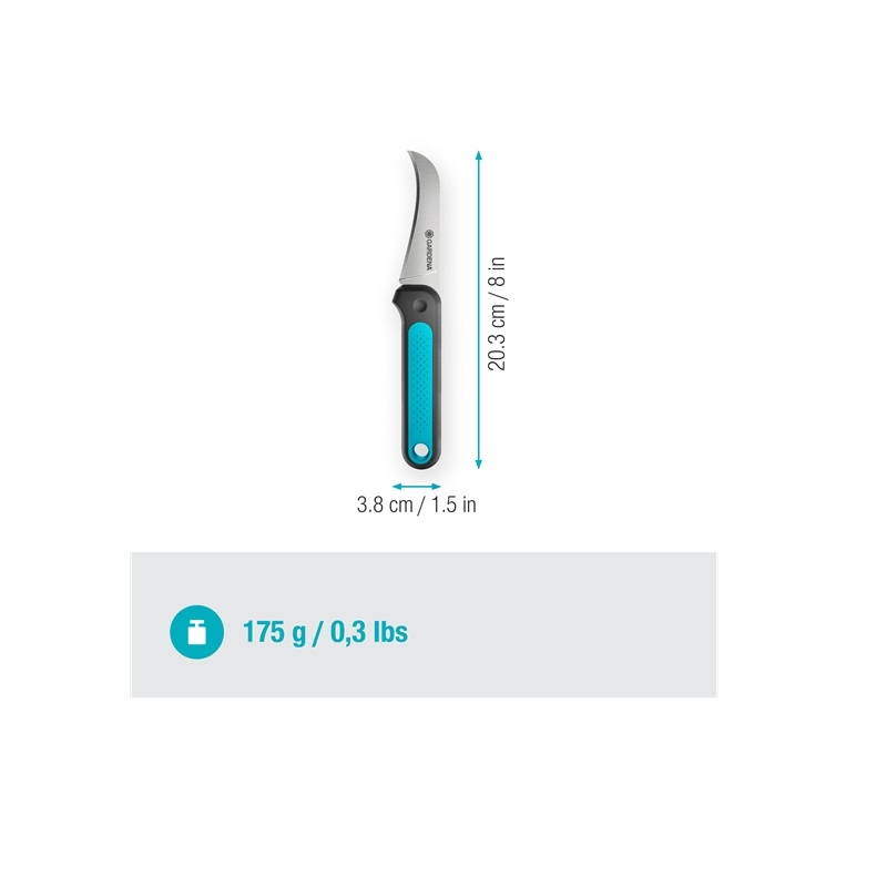 Dzięki praktycznemu futerałowi, który można łatwo zamocować do pasa, nóż VeggieCut zawsze będzie pod ręką podczas zbiorów. Bezpiecznie przechowuj go w futerale, zawsze gotowego do działania!
