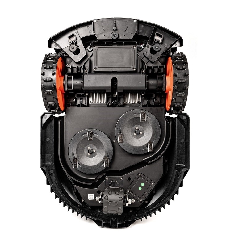 Kolejnym innowacyjnym rozwiązaniem są adaptacyjne pływające ostrza (Floating Cut Discs), które poruszają się w górę i w dół, dostosowując się do kształtu terenu. Dzięki temu robot z łatwością kosi zarówno gęstą trawę, jak i trudno dostępne miejsca na nierównych powierzchniach, zapewniając perfekcyjnie równą i precyzyjną linię cięcia. To rozwiązanie eliminuje ryzyko uszkodzenia trawnika lub ostrzy na wybojach czy kamieniach.