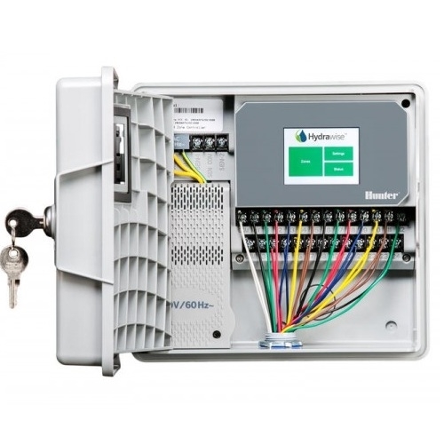 Wewnętrzny, 12 sekcyjny sterownik nawadniania PHC1201iE Hydrawise daje możliwość kontroli systemu nawadniania przez darmową aplikację Hydrawise. Programowanie urządzenia może odbywać się przy pomocy dotykowego wyświetlacza lub smartphona z systemem iOS, Android. W porównaniu ze sterownikiem HC został wyposażony w solidną obudowę do stosowania wewnętrznego/zewnętrznego, szerokie porty kablowe dla łatwiejszej instalacji oraz dodatkowe wyjście do sterowania pompą/zaworem głównym.