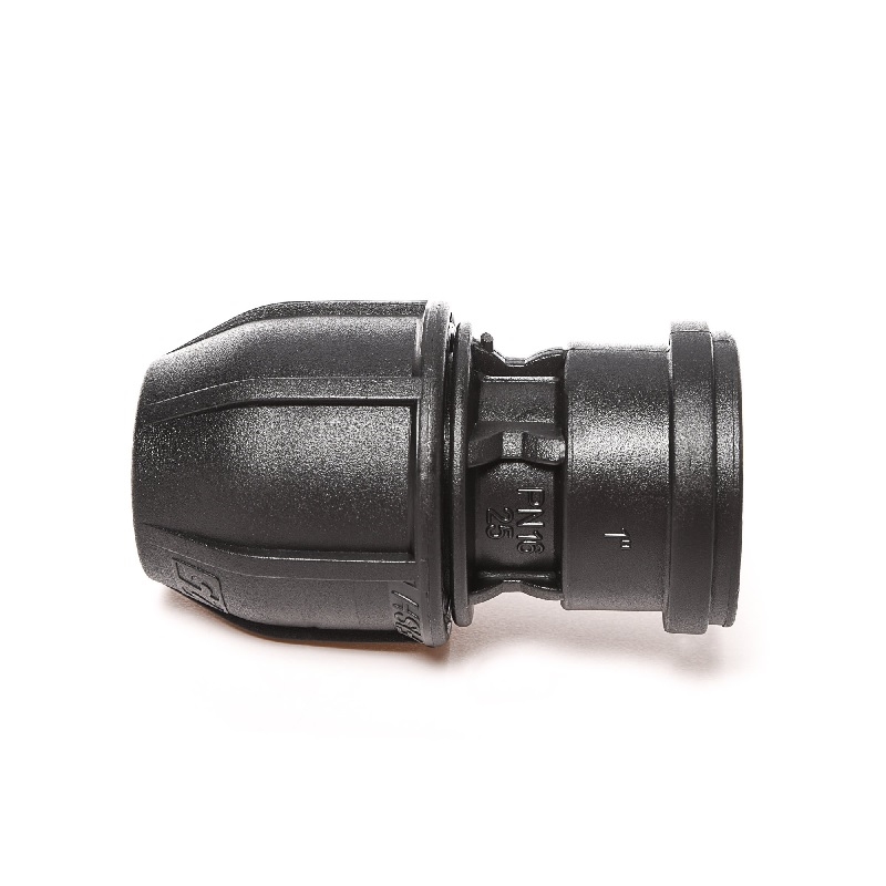 Złącze PE F (GW) 40-6/4" PN16 Fish służy do montażu akcesoriów i podłączania w systemie nawadniania. Aby złączka skręcana zachowała szczelność i parametry pracy należy uprzednio przygotować rurę PE. Do jej przycinania należy używać specjalnych nożyc pozwalających zachować gładkie krawędzie i odpowiedni kształt podczas cięcia. Wprowadzając rurę do złączki należy upewnić się, że posiada orkągły (nie owalny!) kształt, jest ucięta pod kątem prostym i posiada łagodnie zakończone krawędzie, kóre nie uszkodzą wewnętrznego o-ringu.