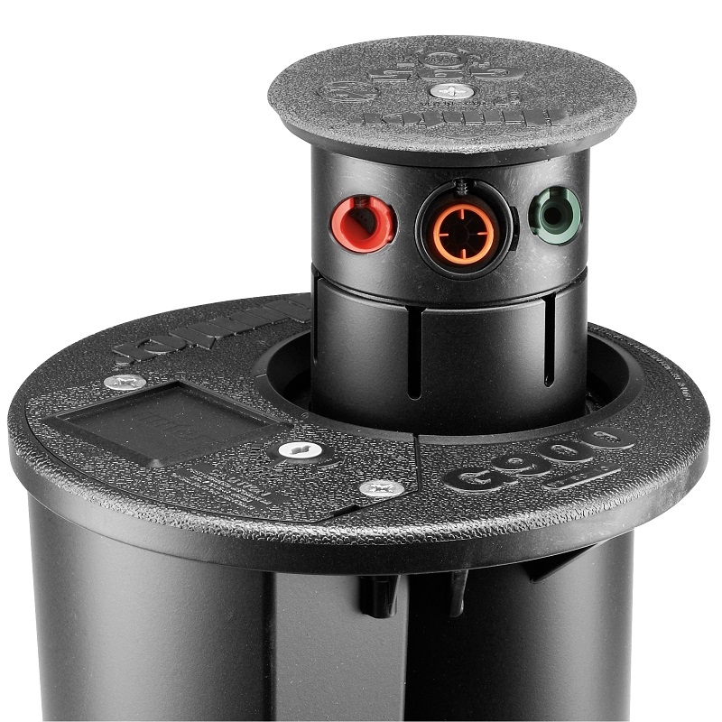 Zintegrowany mechanizm zapadkowy umożliwia proste obrócenie tłoka w celu wyrównania punktu cofania po prawej stronie. G995 jest wyposażony technologię PressurePort™, która pozwala na prawidłową pracę zraszacza do 8,3 Bara. Oznaczone kolorami dysze o podwójnej trajektorii standardowa trajektoria (22,5°) i trajektoria niskokątowa (15°) dla optymalizacji równomierności opadu. Wysokość wynurzenia: 8 cm. Całkowita wysokość obudowy: 34 cm. Maksymalna średnica: 19 cm.